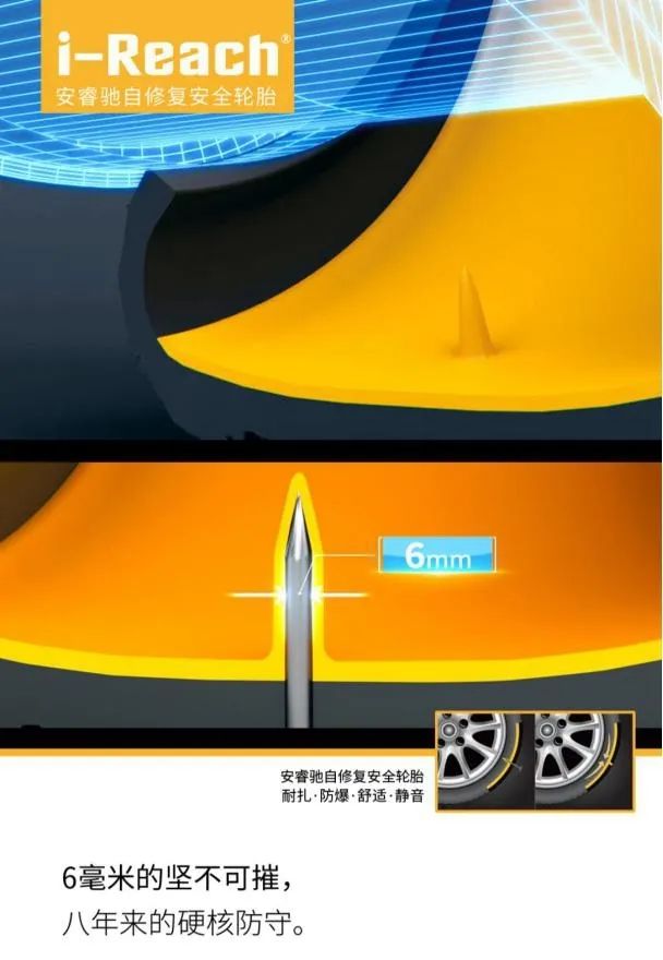 安睿驰自修复安全轮胎——专治“钉子户”。